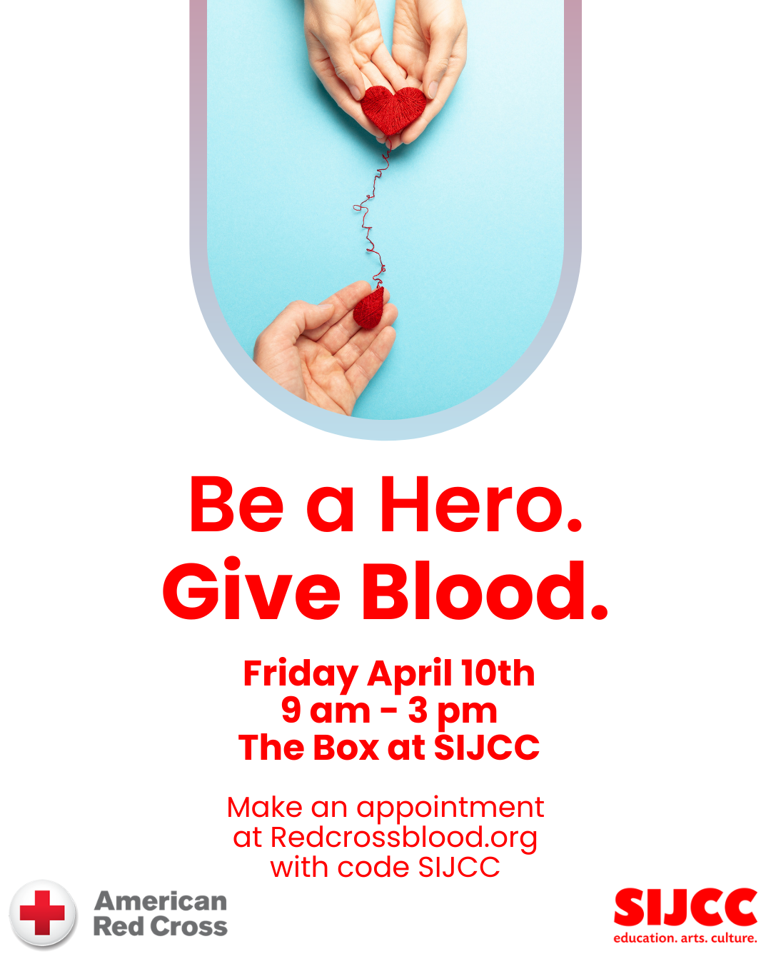 Appointments are strongly encouraged - You can sign up in advance at https://www.redcross.org using the SIJCC code.