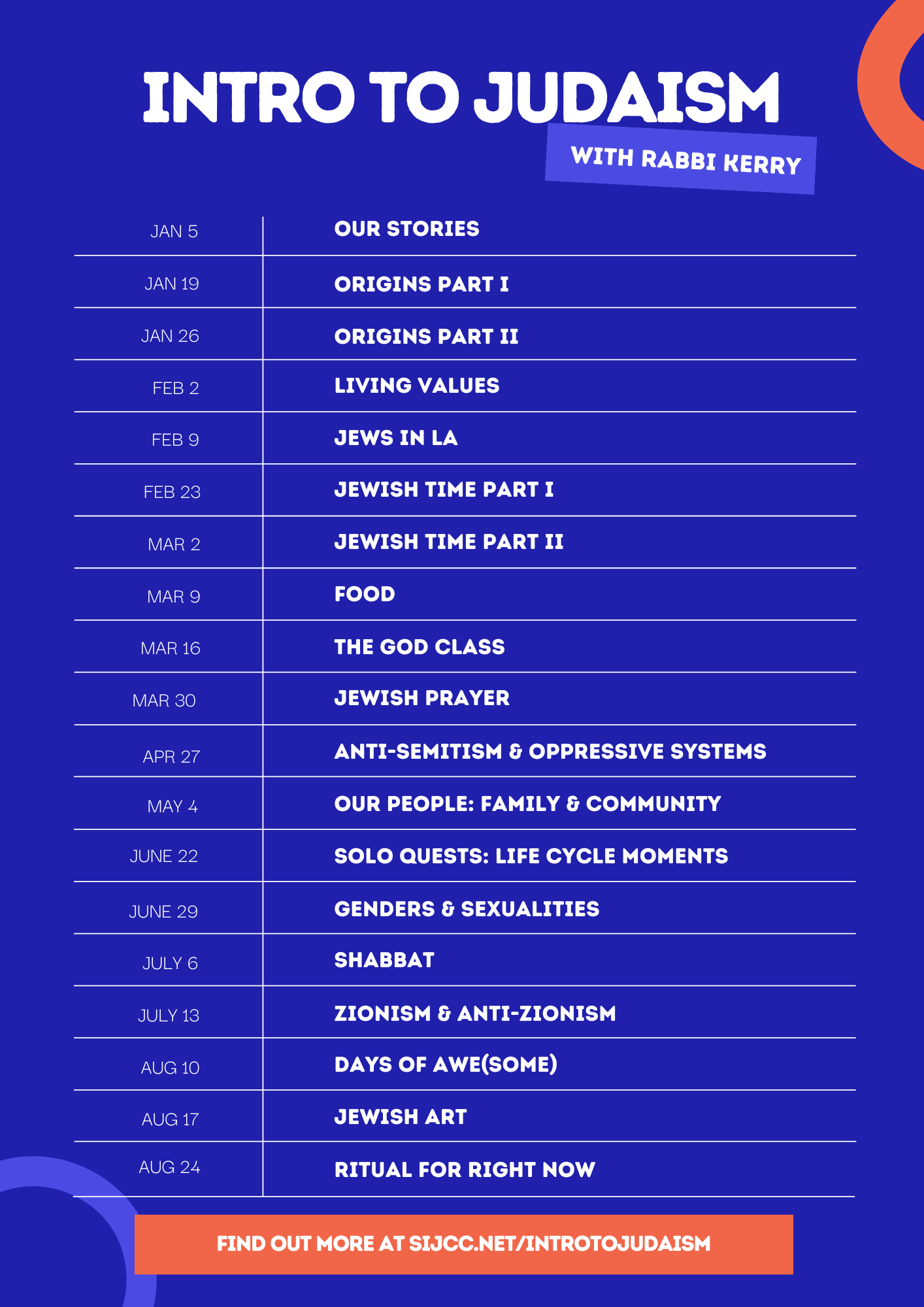 If you are interested in future courses, please contact Rabbi Kerry at rabbikerry@sijcc.net.